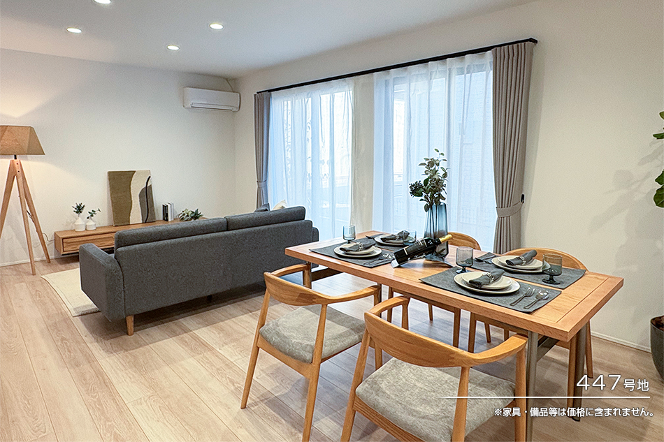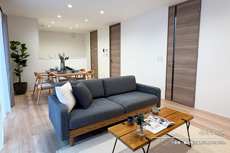 1.南面開口で明るいリビングダイニングは、家族が集う憩いの空間に。